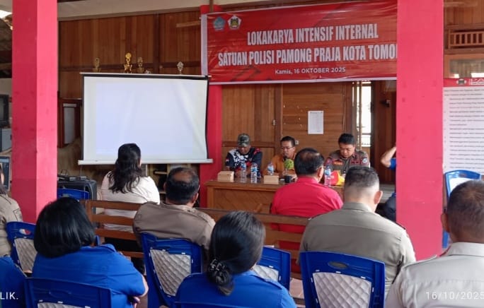 Humas Polres Tomohon – Satuan Reserse Kriminal (Sat Reskrim) Polres Tomohon melalui Kanit 1 Reskrim Bripka Tamado Maapanawang menjadi narasumber dalam kegiatan Lokakarya Intensif Internal Satuan Polisi Pamong Praja (Satpol PP) Kota Tomohon, Kamis (16/10/2025).