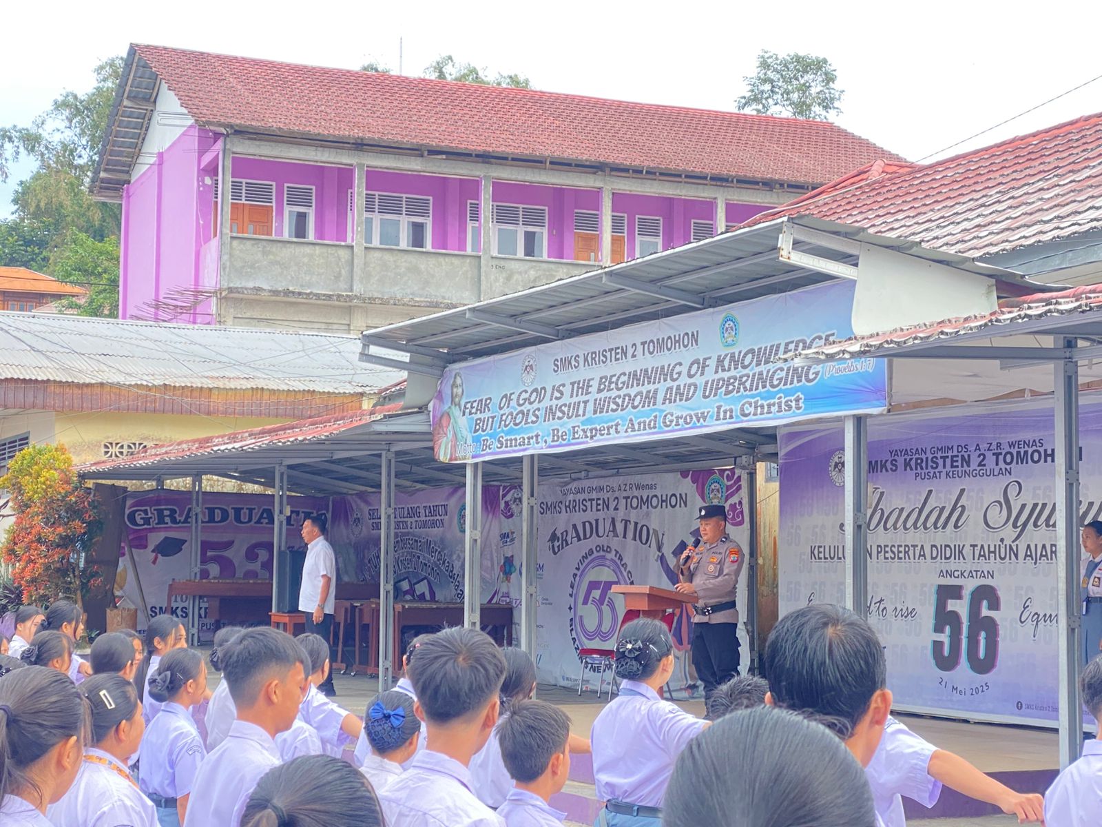 Kepala Sekolah SMK Kristen 2 Tomohon, Drs. Novrie Sumampow, menyampaikan apresiasi dan terima kasih kepada Sat Binmas Polres Tomohon atas kegiatan edukatif tersebut.