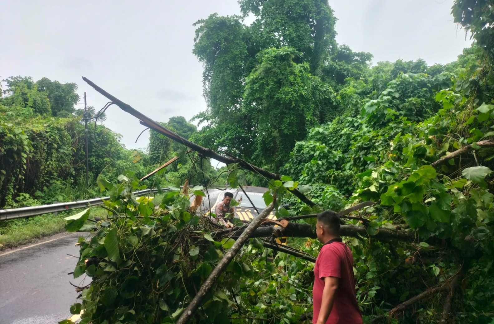 Pohon yang tumbang tersebut diduga kuat akibat terpaan angin kencang disertai hujan lebat yang hampir sepanjang hari melanda wilayah Kecamatan Tombariri dan sekitarnya. Keberadaan pohon yang melintang di jalan utama membuat arus lalu lintas terhambat dan berpotensi menimbulkan kecelakaan bagi para pengguna jalan.
