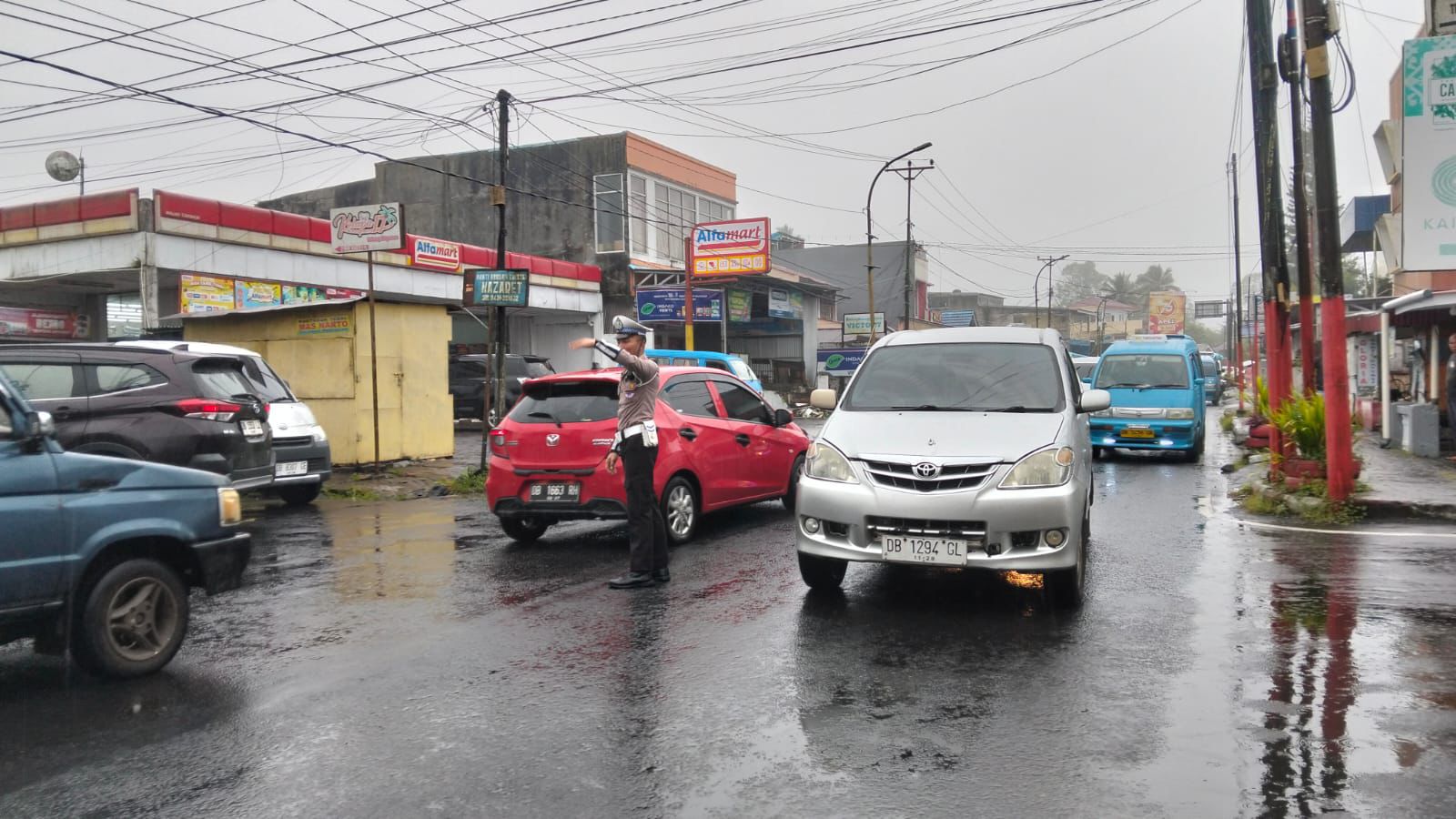 Meski cuaca diguyur hujan sejak pagi, para personel tetap berdiri di tengah jalan, mengatur arus lalu lintas dengan penuh dedikasi demi memastikan masyarakat dapat berkegiatan dengan aman dan lancar. Tanpa mengenal lelah, mereka disebar di sejumlah titik rawan kemacetan untuk mengurai antrean kendaraan yang meningkat akibat kegiatan berskala besar tersebut.