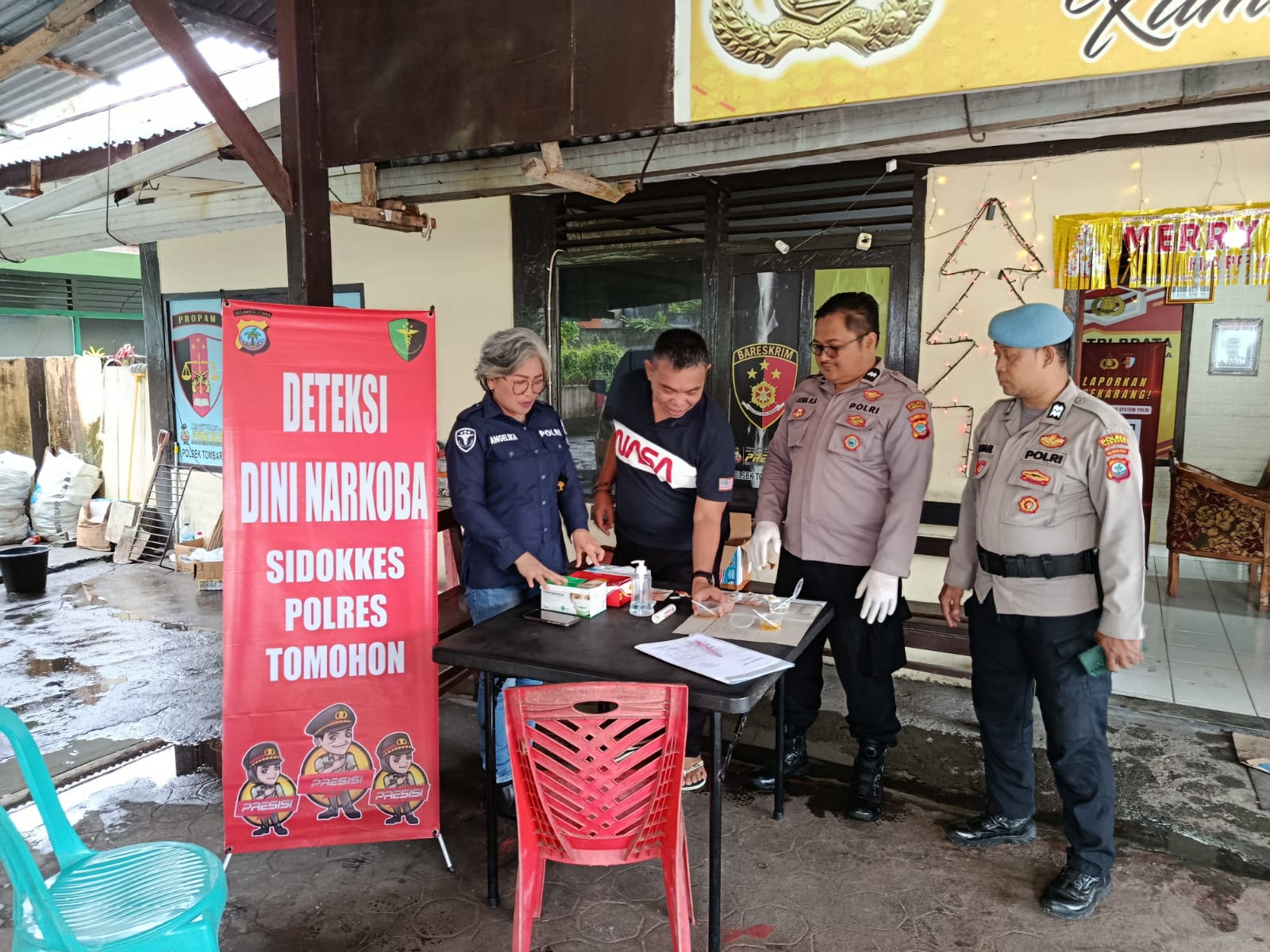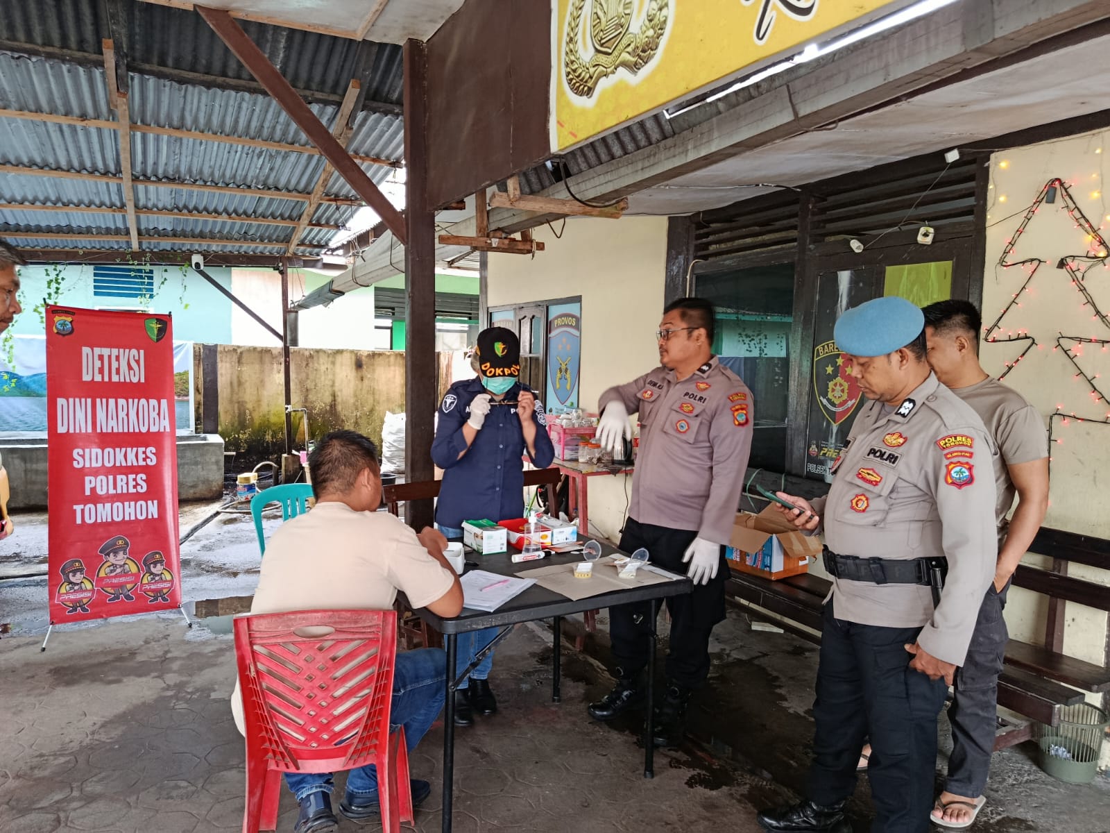 Humas Polres Tomohon – Dalam upaya menjaga disiplin, integritas, serta kesiapsiagaan anggota Polri, Polres Tomohon kembali melaksanakan deteksi dini pencegahan penyalahgunaan narkoba di lingkungan nya dimana pada Jumat (12/12/2025) pagi, Seksi Kedokteran dan Kesehatan (Si Dokkes) Polres Tomohon yang dipimpin oleh Kasi Dokkes Penda Tk I Angelika I. Rumimper, A.Md., Kep., melaksanakan pemeriksaan narkoba kepada seluruh personel Polsek Tombariri bertempat di Mapolsek Tombariri.
