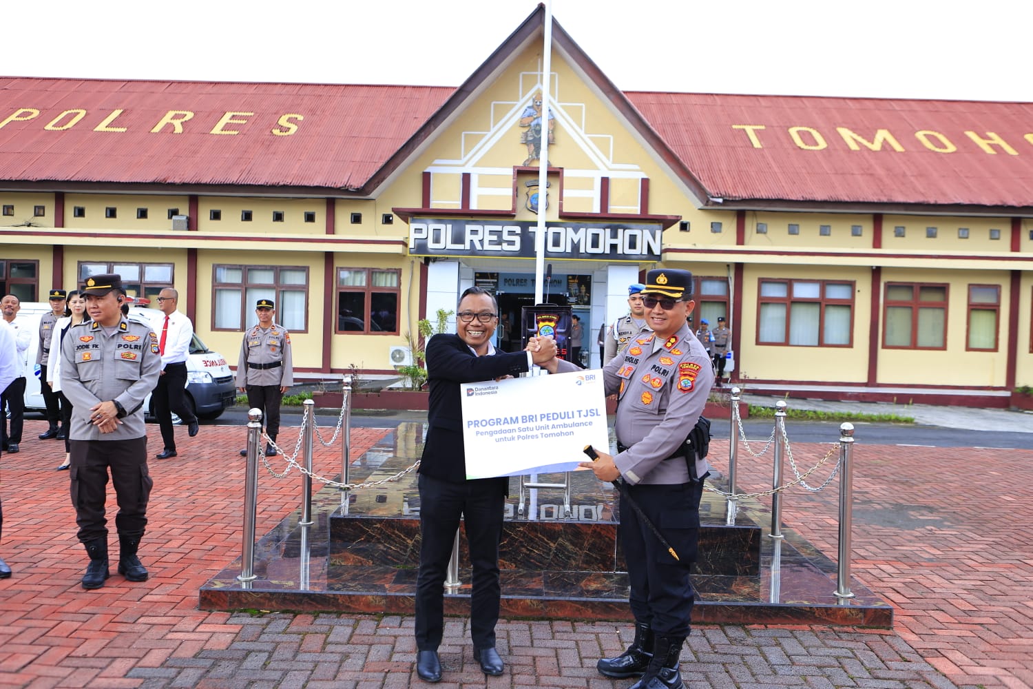 Kapolres Tomohon AKBP Nur Kholis, S. I. K. menyampaikan apresiasi dan terima kasih kepada BRI melalui Program BRI Peduli TJSL atas dukungan yang diberikan. Bantuan mobil ambulans ini diharapkan dapat menunjang pelayanan kesehatan serta mendukung pelaksanaan tugas Polres Tomohon, khususnya dalam memberikan pelayanan terbaik kepada masyarakat.