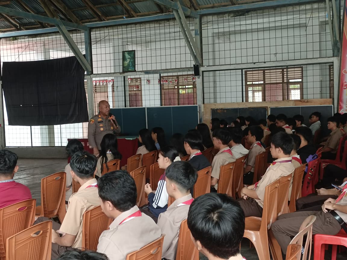 Selanjutnya, penyuluhan dilanjutkan oleh Ipda Irene Stefani Manurip, S.H., yang mengulas secara mendalam mengenai tindak pidana kekerasan seksual, bentuk-bentuknya, dampak hukum bagi pelaku, serta langkah-langkah pencegahan dan pelaporan apabila terjadi tindak kekerasan seksual di lingkungan sekolah maupun masyarakat.