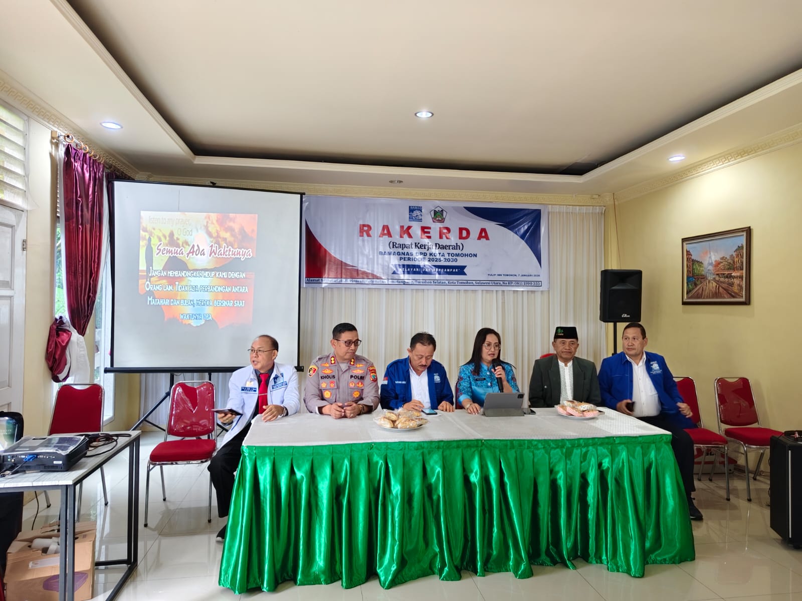 Selama kegiatan berlangsung, Rapat Kerja Daerah BAMAG-NAS Kota Tomohon berjalan dengan aman, tertib, dan penuh suasana kebersamaan, mencerminkan kuatnya sinergitas antara aparat keamanan dan tokoh lintas agama demi menjaga persatuan dan kedamaian di Kota Tomohon.
